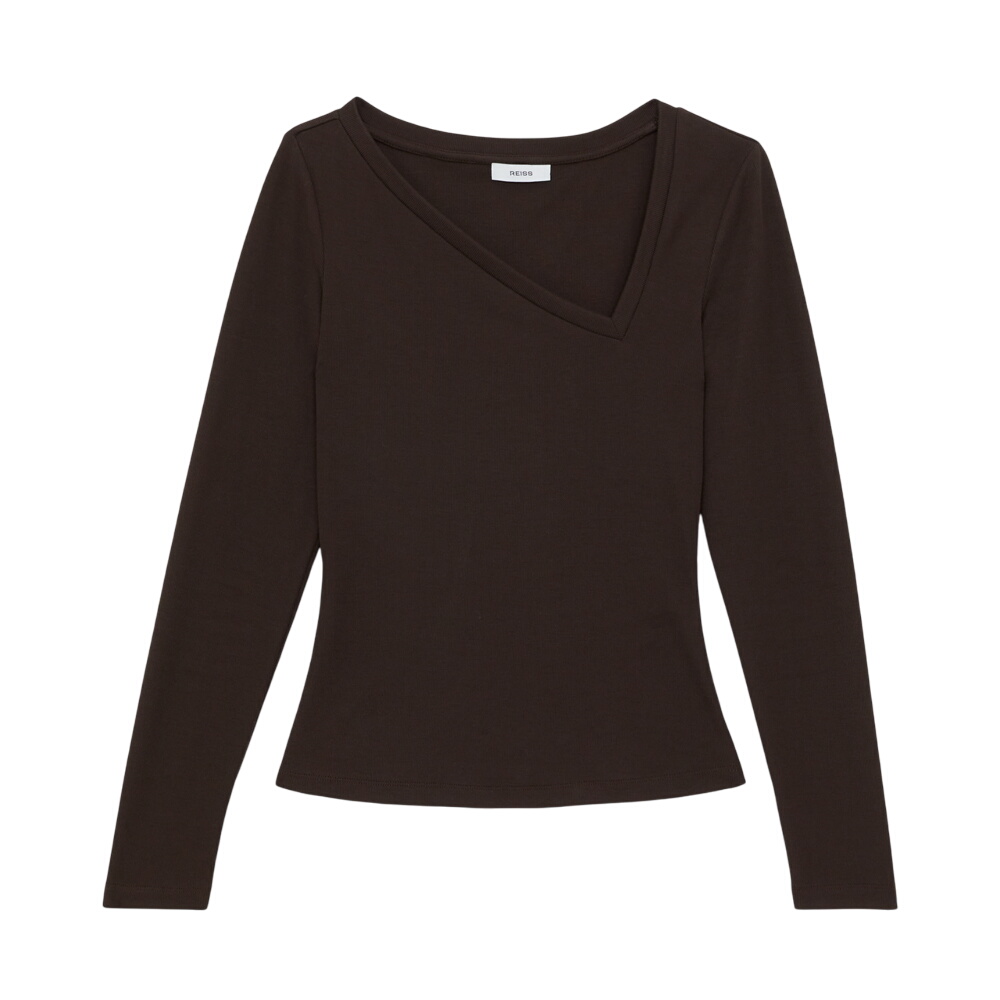 REISS Felicity Stretch-Cotton Asymmetric-Neck Top