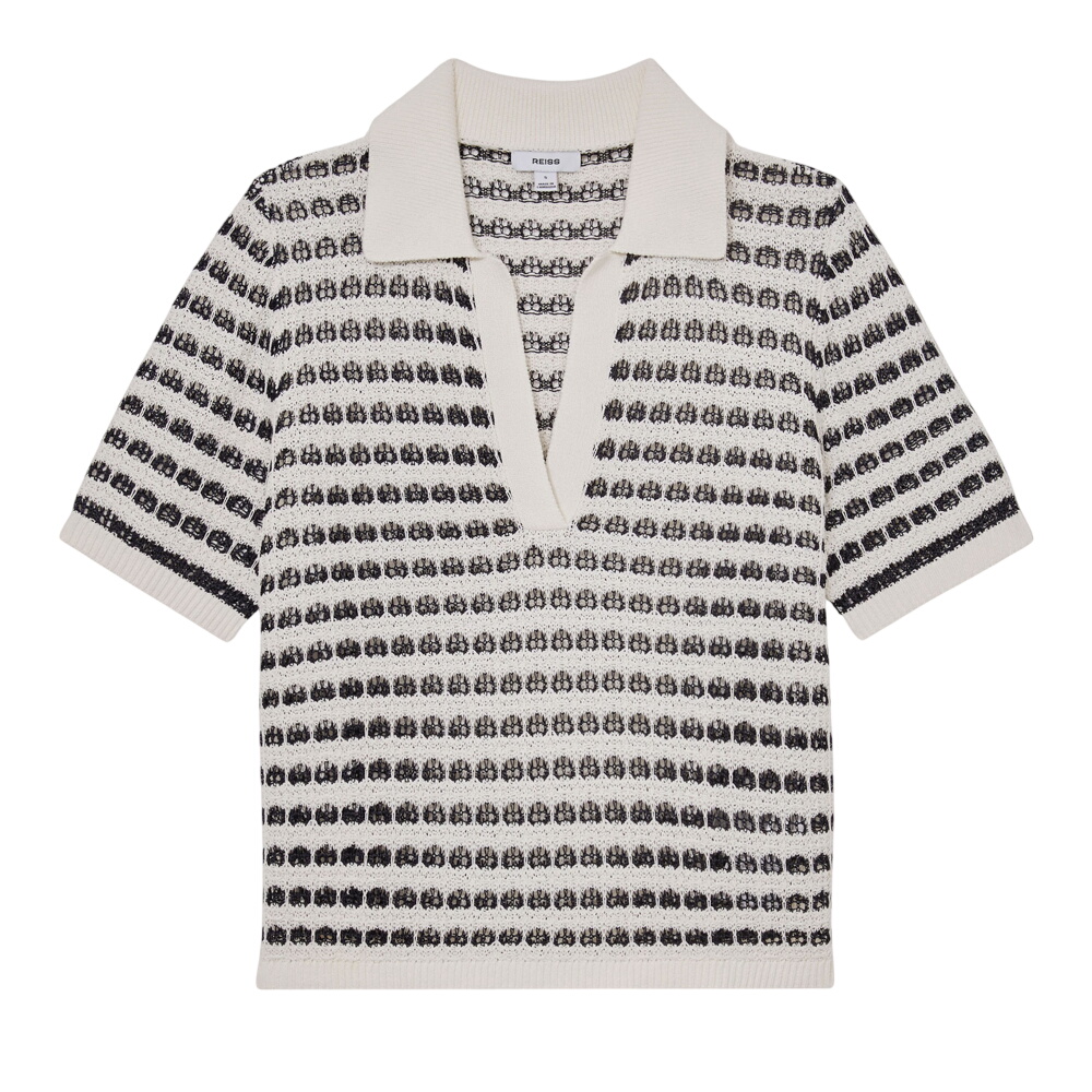 REISS Gemma Open-Knit Patterned Polo Top With Cotton