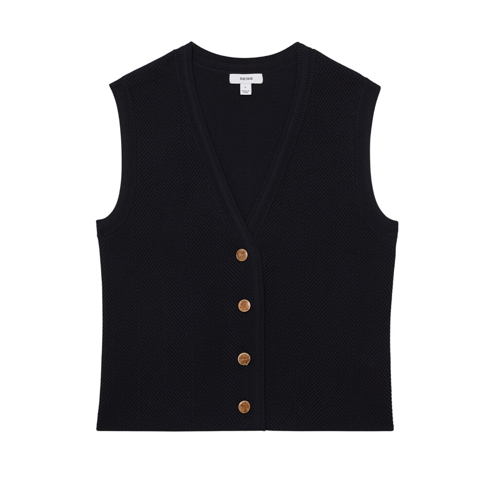 REISS Ria Textured-Knit Button-Through Waistcoat