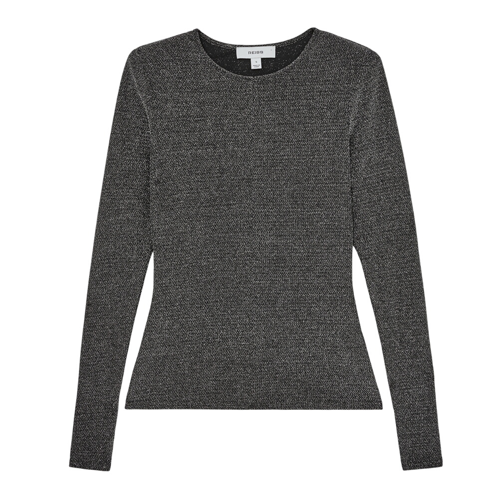 REISS Saraphina Metallic-Knit Long-Sleeve Top