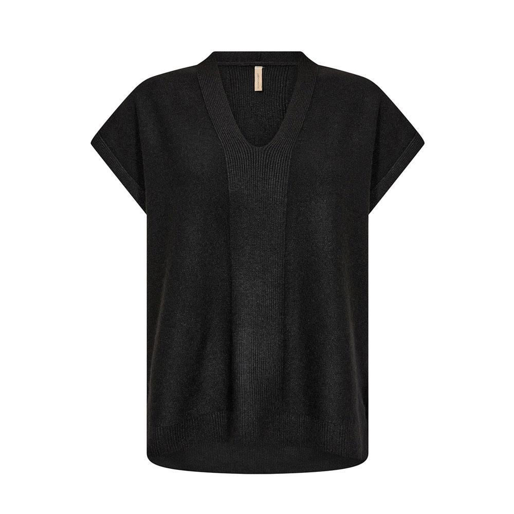 This Soyaconcept sleeveless top is crafted with 97% Recycled Polyester and 3% Elastane. The design includes a V-neckline, short sleeves, and subtle ribbed textures throughout. Wear it layered over a shirt or on its own for a relaxed look.