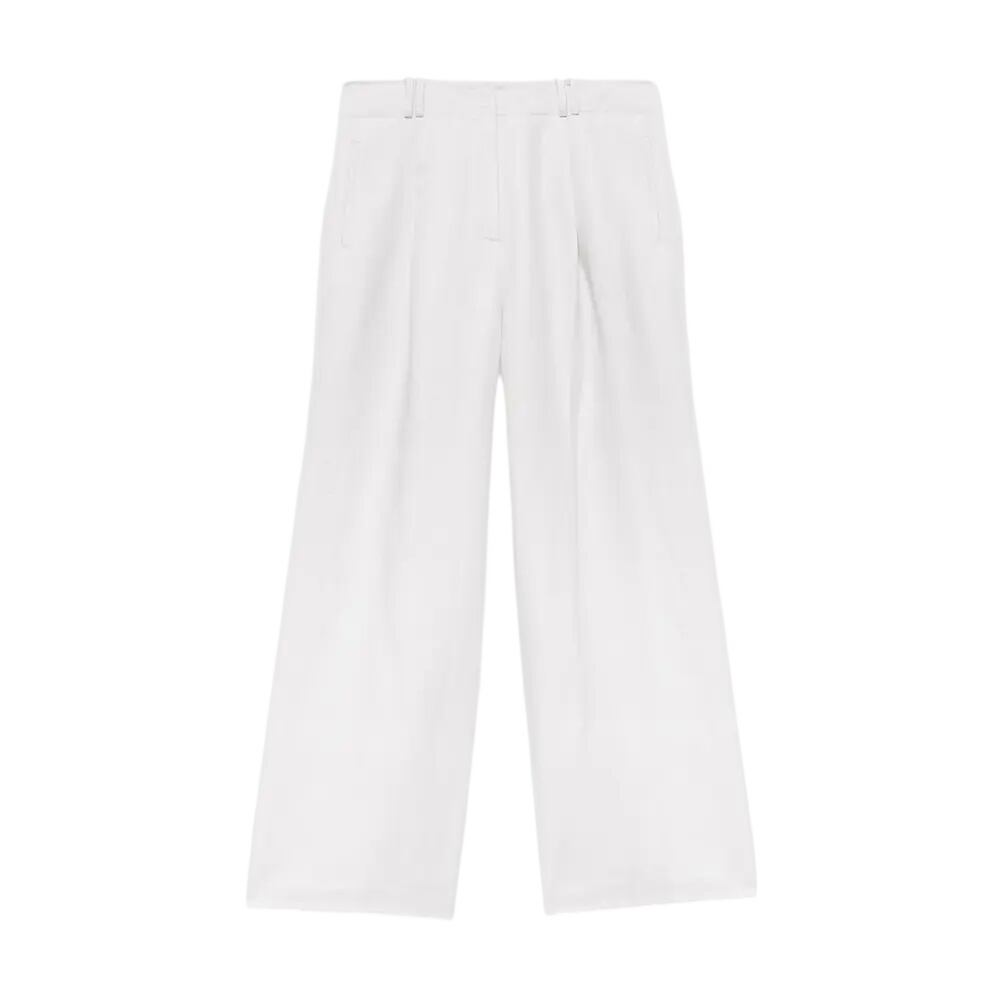 Mint Velvet Cream Linen Blend Pleated Wide Leg Trousers