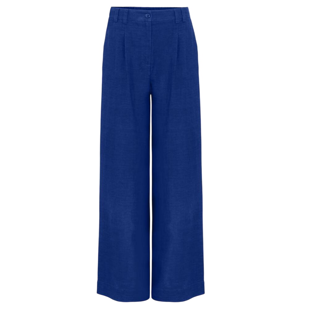 Your timeless linen trousers, with a statement twist. In a luxe linen-blend, these bold cobalt blue trousers are designed in a relaxed wide-leg silhouette with side pockets and a comfortable elasticated waist at the back. Perfect for styling with t-shirts and blouses, as well as the matching linen blazer for a coordinated look.