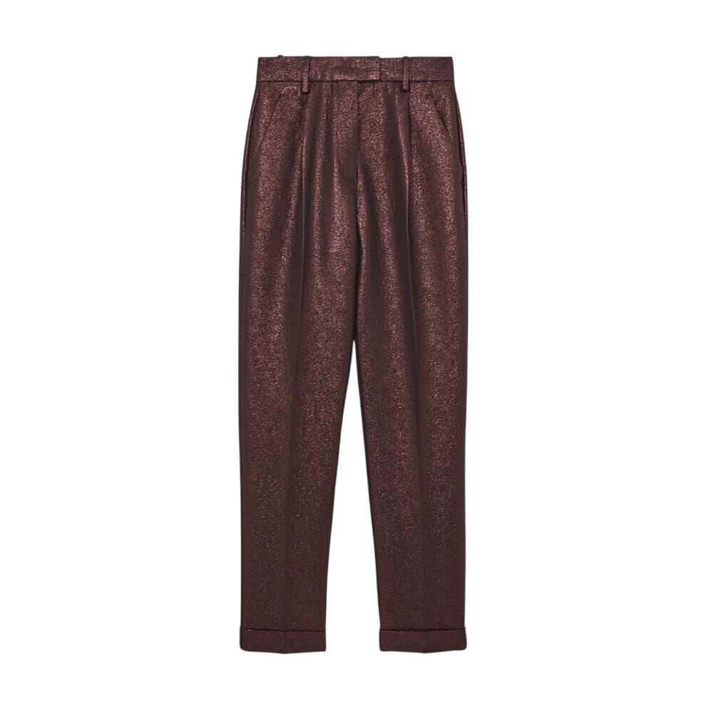 The sparkle taper trouser features a subtle shimmer that catches the light beautifully, adding a hint of luxury to your outfit. The tapered leg design ensures a sleek and contemporary profile, while the mid-rise waistband provides comfort and style in equal measure. These trousers are an ideal choice for pairing with both tailored blouses and chic knitwear, making them a versatile addition to your wardrobe.